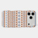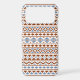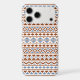 An Aztec style design in a digital and vector pattern with rust/terracotta color and blue detail on a cream background.