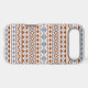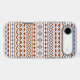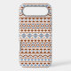An Aztec style design in a digital and vector pattern with rust/terracotta color and blue detail on a cream background.