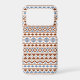 An Aztec style design in a digital and vector pattern with rust/terracotta color and blue detail on a cream background.