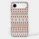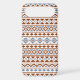 An Aztec style design in a digital and vector pattern with rust/terracotta color and blue detail on a cream background.