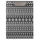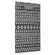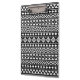 An Aztec style design in a digital and vector pattern with white detail on a black background.
