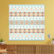 An Aztec style design in a digital and vector pattern in blue, cream and terracotta colours.