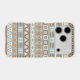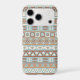 An Aztec influenced style of design in a digital and vector pattern in blue, cream and terracotta colors.