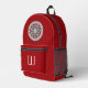 A simple geometric pattern on the outside, inspired in part by ancient Aztec designs, surrounds an alien themed layer, a gradient layer, and a simple squiggle layer in this concentric circle design. Customise the initial on the front pouch of this backpack with your own monogram to make this accessory uniquely yours.
