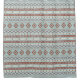 Aztec influenced mixed motif pattern in rust colours and a cream colour detail on a blue background.
