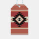 Aztec ethnic bohemian pattern with geometrical shapes in red, orange, grey and black colours on striped background