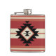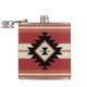 Aztec ethnic bohemian pattern with geometrical shapes in red, orange, grey and black colours on striped background