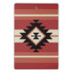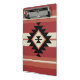 Aztec ethnic bohemian pattern with geometrical shapes in red, orange, grey and black colours on striped background