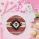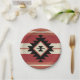 Aztec ethnic bohemian pattern with geometrical shapes in red, orange, grey and black colours on striped background