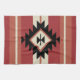Aztec ethnic bohemian pattern with geometrical shapes in red, orange, grey and black colours on striped background