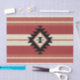 Aztec ethnic bohemian pattern with geometrical shapes in red, orange, grey and black colours on striped background
