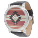 Aztec ethnic bohemian pattern with geometrical shapes in red, orange, grey and black colours on striped background