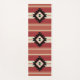 Aztec ethnic bohemian pattern with geometrical shapes in red, orange, grey and black colours on striped background