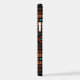 Aztec influenced pattern in symbols/motifs of rust colours and light teal on a black background design.
