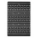 Aztec influenced shapes and line pattern in grey and white detail on a black background.