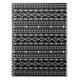 Aztec influenced shapes and line pattern in grey and white detail on a black background.