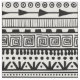 Black Aztec style mixed motifs on white background, seamless repeat pattern