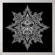 This Aztec inspired sun design has eight intricate rays that stretch out from the centre of the pattern. The menacing mask at the centre of the design has its eyes locked forward and tongue stretched out of its tooth filled mouth. Two-headed serpents sit inside of stylised rectangles on the four corners of the outer circle. This aggressive design is a striking homage to the beauty and mystery of Aztec art.