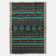 Aztec Teal Reds Yellow Blk Mixed Motifs V Pattern Throw Blanket