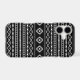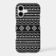 Aztec mixed motifs pattern in black, white and grey detail on a black background monochrome design.