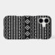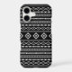 Aztec mixed motifs pattern in black, white and grey detail on a black background monochrome design.
