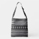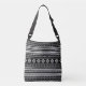 Aztec White on Black Mixed Motifs Pattern Crossbody Bag