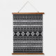 Aztec White on Black Mixed Motifs Pattern Hanging Tapestry