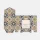Azulejo blue Portuguese Talavera tiles vintage Mexican wedding favours personalised printed favour box template Mediterranean ornate Talavera tile pattern wedding favour boxes with bride and groom names