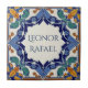 Azulejo Mediterranean Colorful Custom Name Plate House Plaque Sign. You can edit the text in the center, change the font, change the color, size, etc. Gift these tiles as custom name coasters for each family member, for friends or teams, use them for home accents on your bookshelves, in your living rooms and bedrooms, or as mosaic wall art with other tiles. Or leave the central space empty, and use as decorative backsplash ceramic tiles.