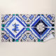 A beautiful vintage design of Azulejo Spanish and Portuguese pattern tiles pattern in navy blue, white and hints of green and light orange. The design can be customised to your matching monogram. A beautiful taste of the Mediterranean perfect for Summer home decor. The perfect rustic geometric mosaico design, ideal gift for any occasion.