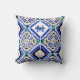 Azulejo Spanish Pattern Tiles Navy White Monogram Cushion