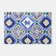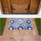 Azulejo Spanish Pattern Tiles Navy White Monogram Doormat