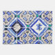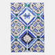 Azulejo Spanish Pattern Tiles Navy White Monogram Tea Towel