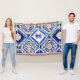 Azulejo Spanish Pattern Tiles Navy White Monogram Throw Blanket