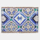 A beautiful vintage design of Azulejo Spanish and Portuguese pattern tiles pattern in navy blue, white and hints of green and light orange. The design can be customised to your matching monogram. A beautiful taste of the Mediterranean perfect for Summer home decor. The perfect rustic geometric mosaico design, ideal gift for any occasion.