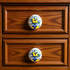 This ceramic knob features a vibrant still-life design of golden-yellow lemons and lush green-blue leaves in a richly detailed cobalt blue vase, accented by delicate yellow blossoms. Inspired by the sun-soaked charm of Mediterranean pottery, the artwork blends bold colours with fine, hand-painted-style detailing, evoking the warmth of Italian and Portuguese ceramics. The soft cream background makes the vivid blues, greens, and yellows pop, creating a cheerful yet sophisticated look.