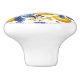 This ceramic knob features a lively citrus design in golden yellows and deep blues, beautifully echoing the charm of azulejos—the traditional hand-painted glazed tiles of Portugal and Spain, celebrated for their intricate patterns and vibrant colour palettes. The artwork depicts plump lemons, a sliced citrus revealing its sunny interior, and delicate yellow blossoms, all surrounded by lush blue-toned leaves and fine botanical details. The crisp white background enhances the contrast, giving the design a fresh, bright feel.