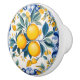 This ceramic knob features a vibrant lemon branch design framed by intricate blue-and-gold flourishes inspired by azulejos—the traditional hand-painted glazed tiles of Portugal and Spain. The plump golden lemons, with their lush green and blue-tinted leaves, sit against a crisp white background, while the ornate border adds a sense of artistry and sophistication. The combination of fresh citrus imagery and decorative tilework creates a look that is both lively and timeless, perfect for bringing a touch of Mediterranean charm into your home.