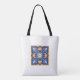 A chic handbag adorned with a soothing blue and beige floral pattern inspired by Mediterranean tiles. Effortlessly stylish and perfect for everyday elegance.