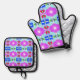 Azure Bloom Kaleidoscope Oven Mitt & Pot Holder Set