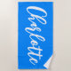 Create your own vivid sky blue personalized beach towel for her dorm room or spring break.