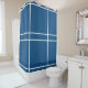 Azure Blue White Geometric Stripes Shower Curtain