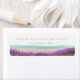 Return Address label with Bright azure and pink magenta nature landscape with blooming coast and mountains. Sunny Nature floral landscape. Silhouettes of mountains, sea coast and bright pink and purple flowers. Watercolor painting background Return Address label. Azure Coast in Bloom Collection.