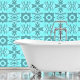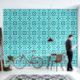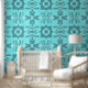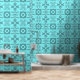 Embrace the charm of the Azure Geometry Wallpaper! 🌟💙 The striking blue and white pattern adds a fresh vibe, while the wooden table brings a cosy touch. Perfect for those who appreciate style and comfort!