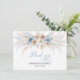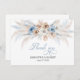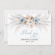 Thank You card featuring soft blue, beige/gold and white roses intertwined with delicate feathery wisps.