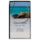 Gift bag with a beautiful photograph. A white sandy beach, with a gentle surf. Tropical turquoise water surrounds a jagged rock.