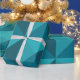 This wrapping paper has a geometric design of triangles that form squares that look like a bird's eye view of pyramids.