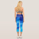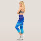 VIVIDLUXE Modern Aesthetic. Move with the fluid grace of water in these high-waisted yoga capris. The Azure Shift design features a swirling gradient of azure shades, flowing from deep navy to light cyan along the legs. This dynamic, abstract pattern inspires calm and focus, making them perfect for yoga, fitness, or mindful movement.