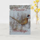 Ring-necked Pheasant "captioned" Card. A beautiful male pheasant in the snow. These multicolored birds are imported and still have a hard time in winter especially when deep snow makes it difficult to find food.