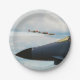 A squadron of World War II war bird fighter planes trail smoke in a salute to the Air Force B-1B Lancer Bomber of today, in this air show demonstration.
